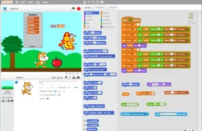 Scrachという簡易なプログラミングツールを利用して、シューティングゲームや横スクロールのアクションゲームの作成を行います。